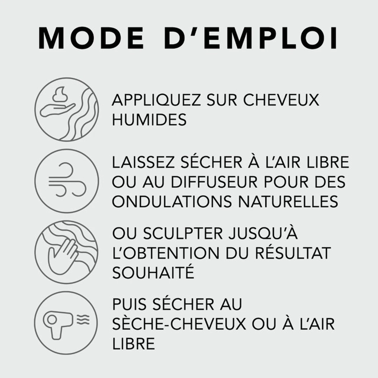 – SĂ©chez Ă l’air libre ou au sèche cheveux avec un diffuseur pour accentuer et dĂ©finir les boucles et les ondulations naturelles